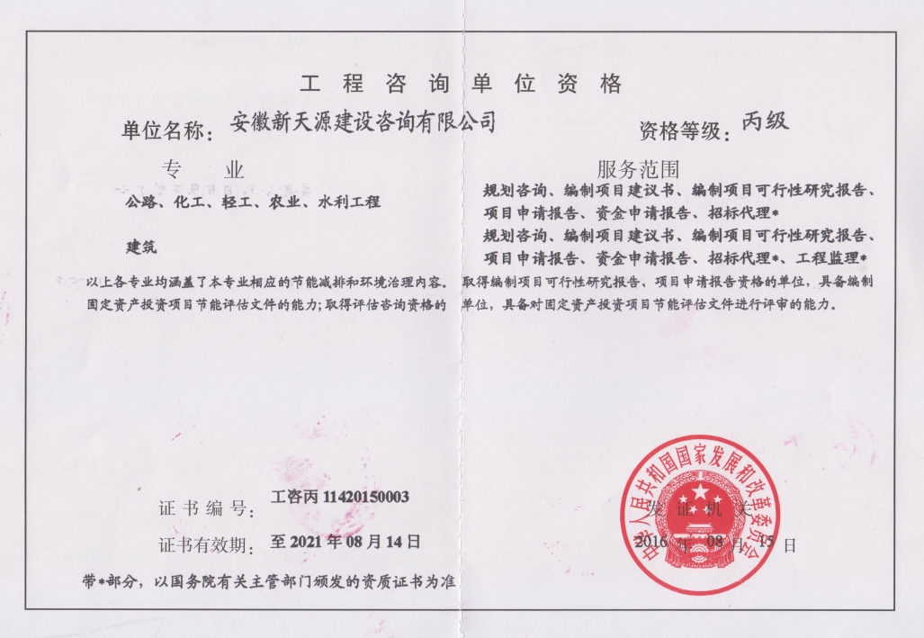 2012年3月取得安徽省發(fā)改委固定資產(chǎn)節(jié)能評(píng)估資質(zhì)證書;